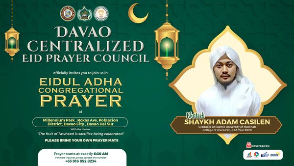 DAVAO CITY — The Davao Centralized Eid Prayer Council has invited Muslims to join the Eid’l Adha Congregational Prayer at the Millennium Park on Roxas Avenue in Davao City on June 16