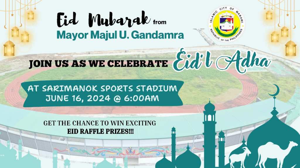 MARAWI CITY, Lanao del Sur – The local government unit of Marawi City is inviting Muslim brothers and sisters to join them in their celebrations of Eid’l Adha on Sunday, June 16 at Sarimanok Sports Stadium.