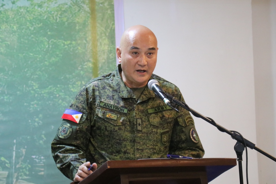 FEATURE PHOTO: Major General Michele Anayron Jr., 4ID commander, emphasizes the importance of the implementation of Executive Order No. 70 or the End Local Communist Armed Conflict (ELCAC) in their quest to stop the CTG-NPA and attain peace and development in the region. (File photo: JAKA/PIA 10)